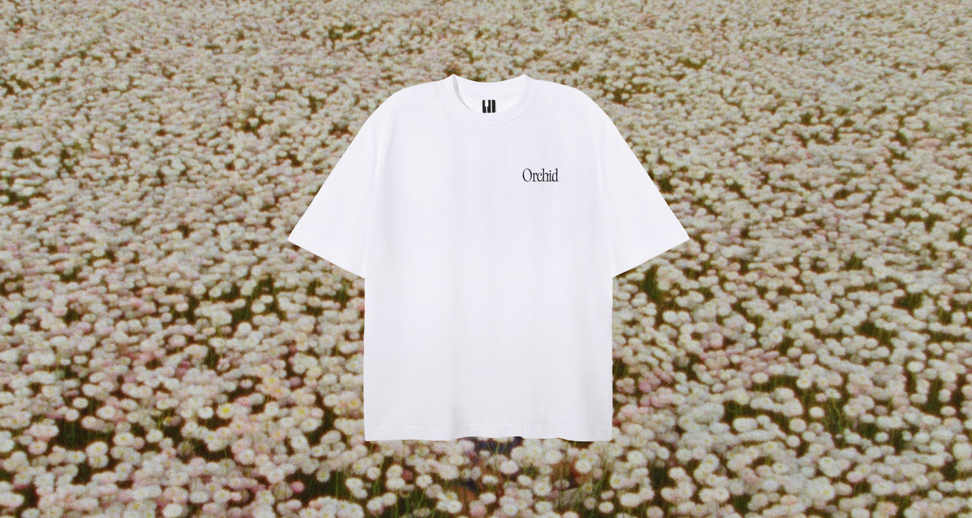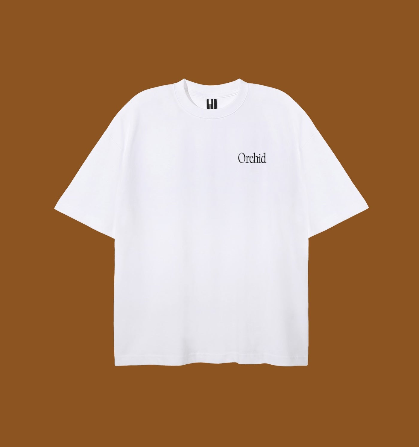 Black Orchid logo in pocket position on front. Soft-print photo on the back.